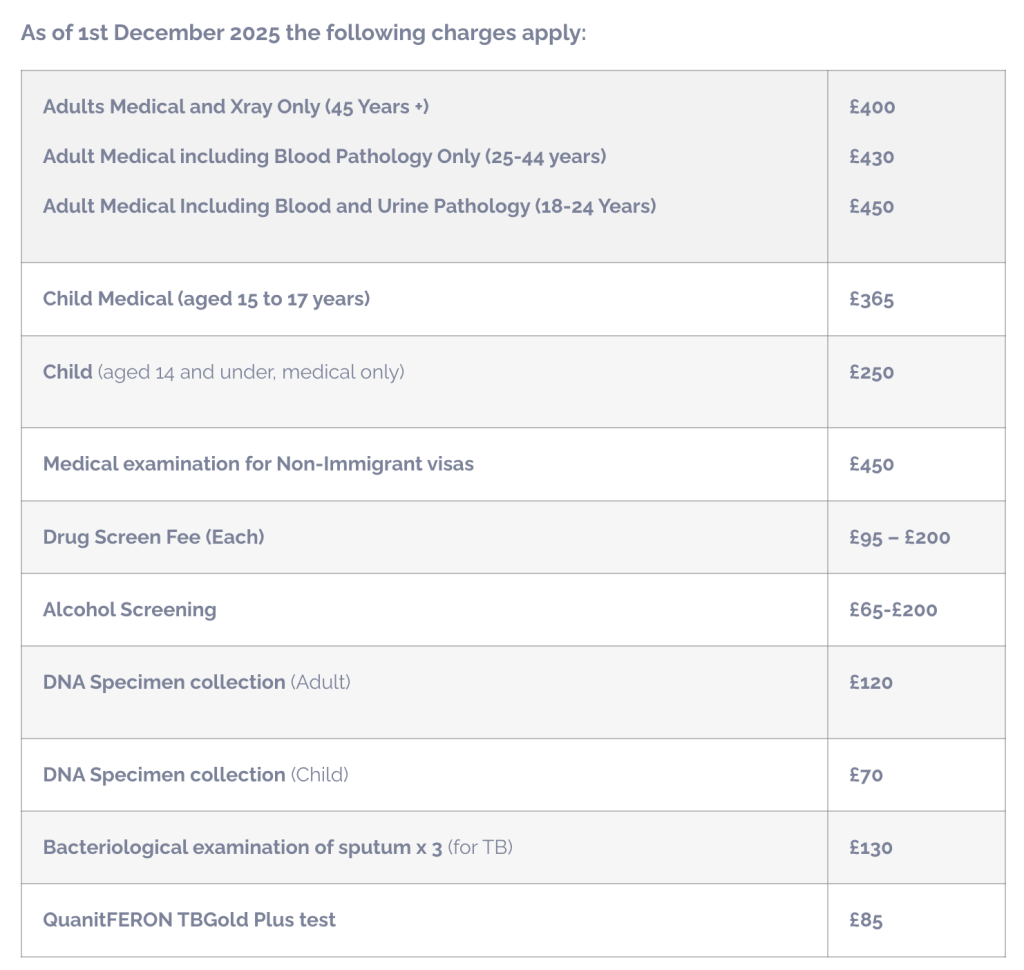 Here’s a graphic from the US Visa Medicals website outlining costs: